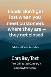 At Cars Buy Text, we make all ads textable — turning your inventory on Autotrader, Cars.com, CarGurus, and more into 24/7 lead machines.